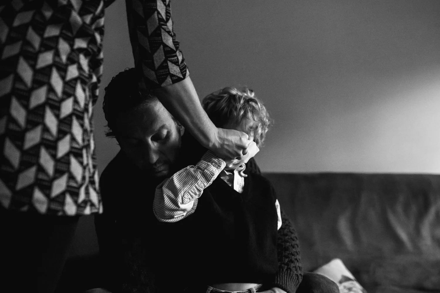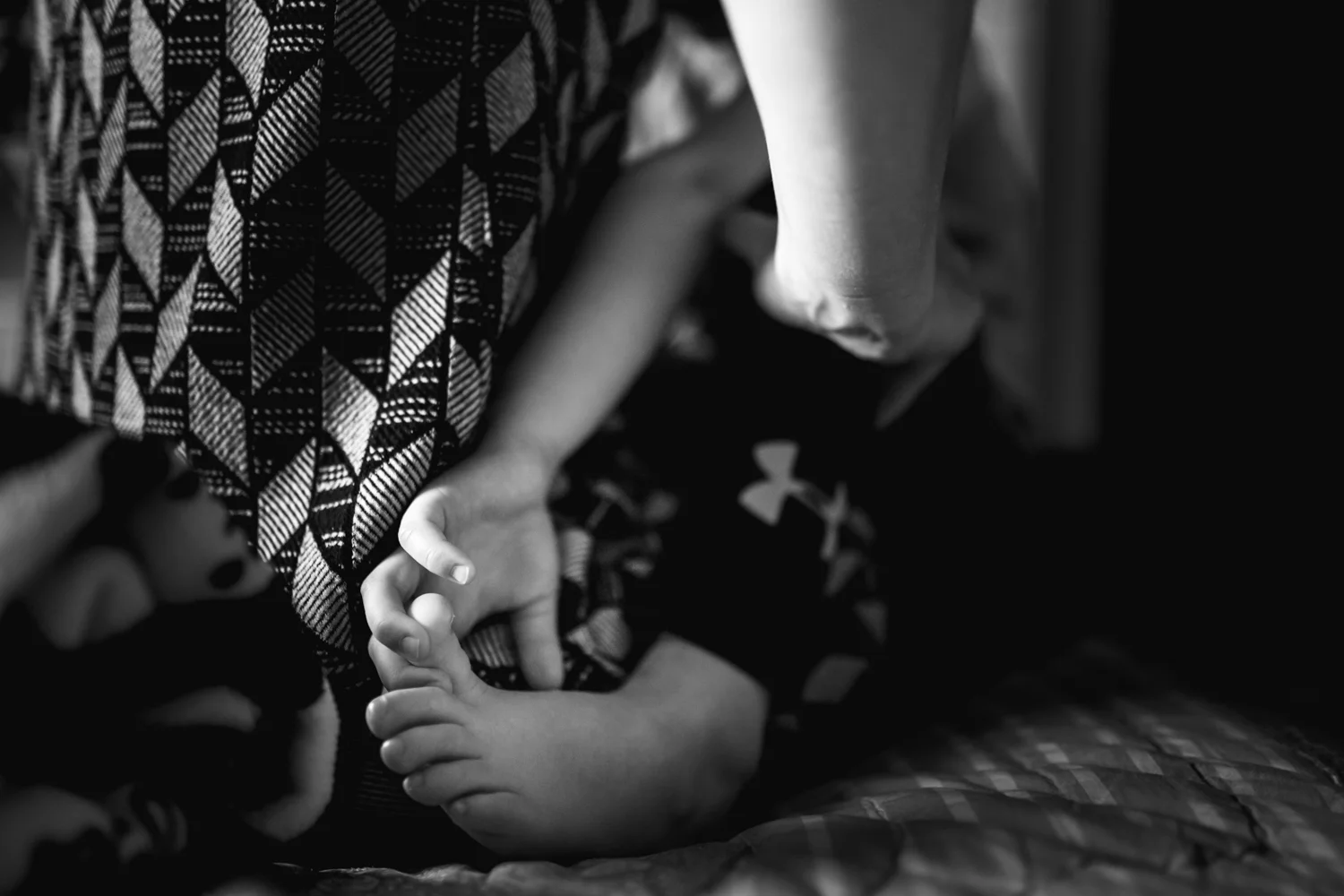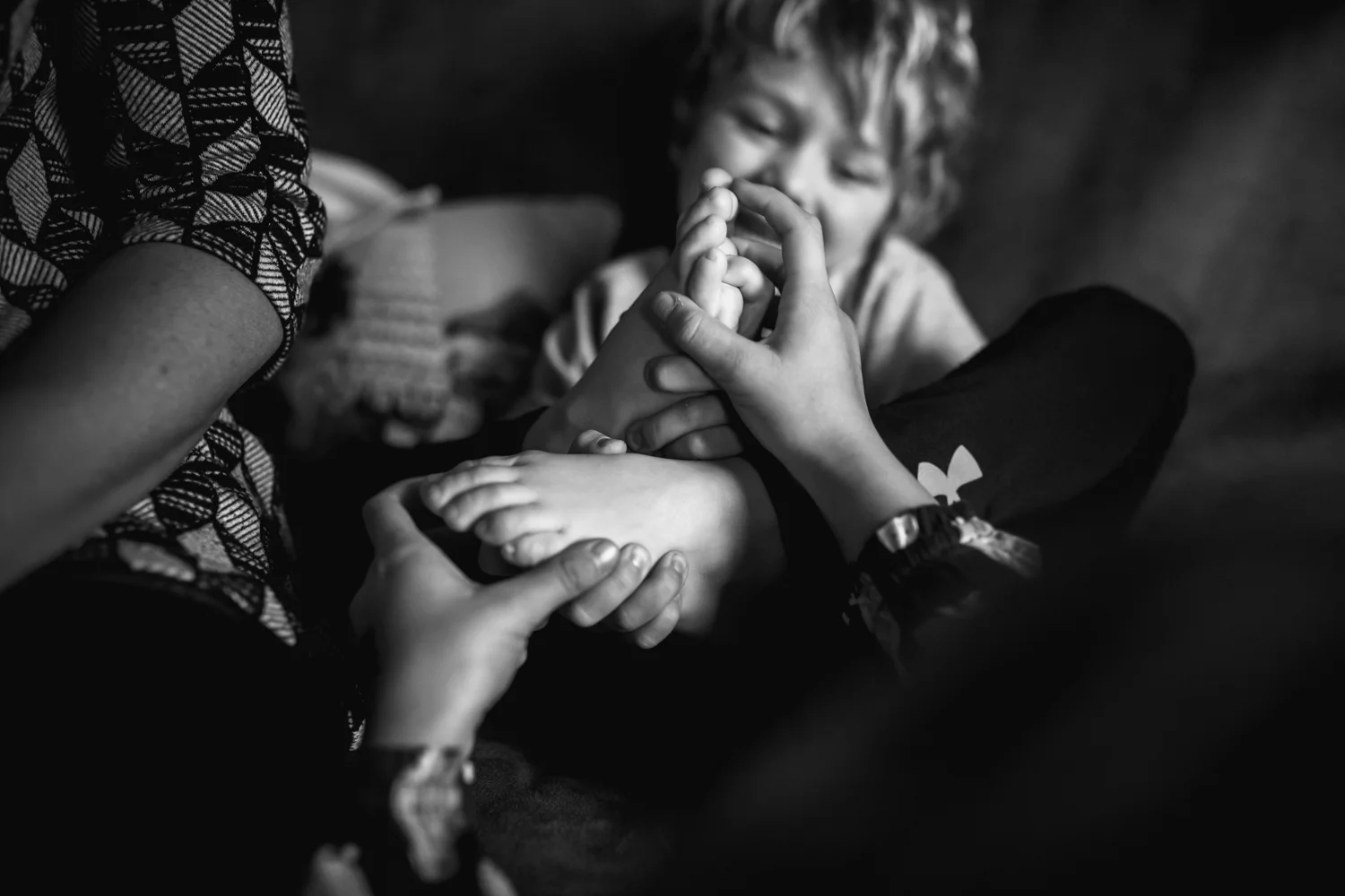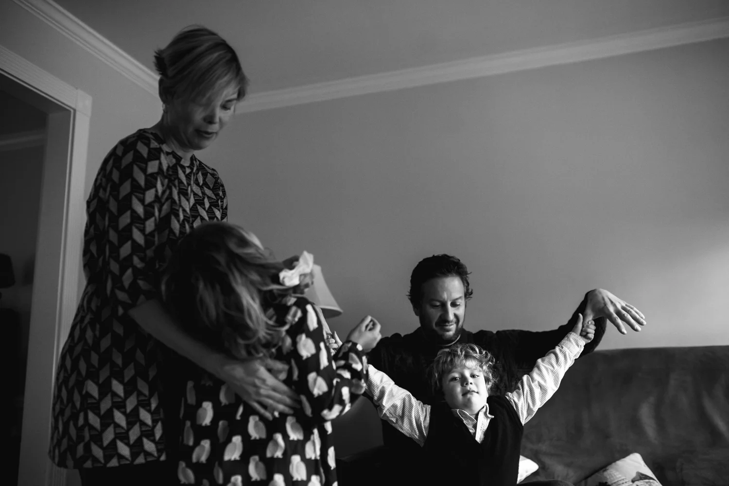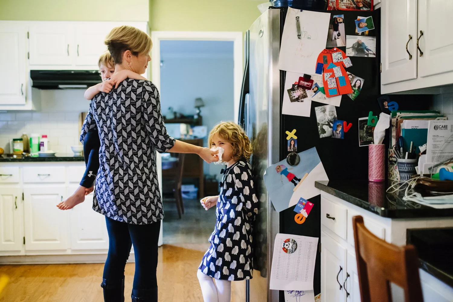 I arrived just in time to wake up Fin from his nap. While Fin was waking up and stretching out, Vivian was excited to introduce me to their new kitties they named Gigi (for Glitter and Glamorous) and John. I bet you can guess who got to name them. Carrie was kind to want to put up the cats knowing that I am allergic to them, but I wouldn't have it. One of the best parts about documenting a family in their home is being able to include pets in the family's story. This year, I was missing Roy, their dog who was in their pictures last year but didn't make it to this year's pictures. Gigi and John have clearly brought a lot of joy and playfulness to the family in Roy's absence. And this session was not short on joy and playfulness. From tickling feet on the couch to window jumps, to goofy giggles, we had a whole lot of fun. We spent some time picking some (a ton) of peppers from their garden (be jealous, I got to take home a bag of those peppers) and wandering around in their backyard. After bringing them in to wash them, they were temporarily used as play phones before they were eaten like apples. It's always a pleasure spending time with the Wsols.